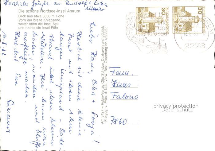 72253721 alte Postkarte Amrum Fliegeraufnahme Nordseeinsel Kniepsand Insel Sylt Insel Foehr postalisch gelaufen Erhaltung siehe scans KatCode: 11110001054085