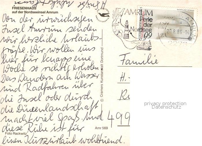 73122137 alte Postkarte Amrum Friesenhaus postalisch gelaufen Erhaltung siehe scans [NatalD47] KatCode: 11110001054085