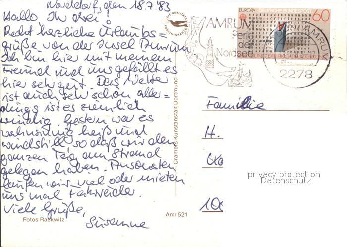 72597320 alte Postkarte Amrum Hafen Strand Windmuehle Wohnhaus Leuchtturm Segeln postalisch gelaufen Erhaltung siehe scans [FriedD77] KatCode: 11110001054085