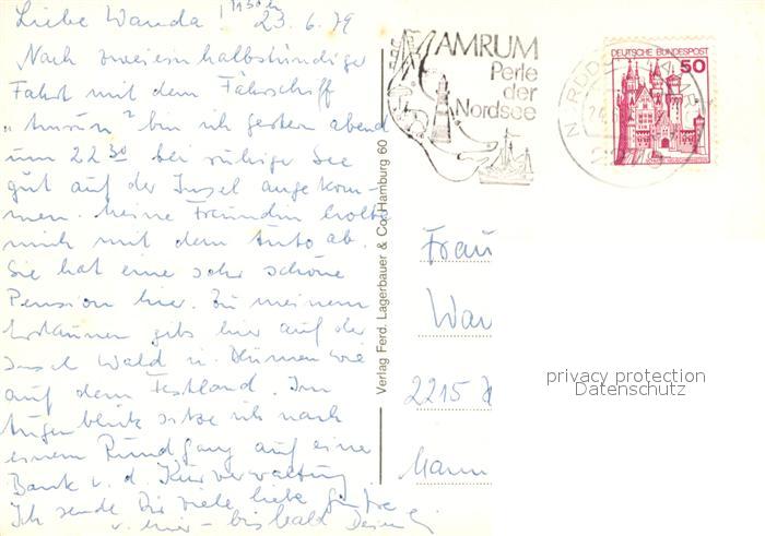 73159544 alte Postkarte Amrum Heidelandschaft Friesenhaus Leuchtturm Windmuehle Sonnenuntergang Hafen Strand postalisch gelaufen Erhaltung siehe scans [FriedD77] KatCode: 11110001054085
