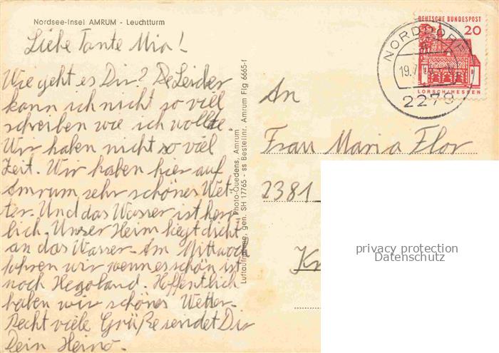 74154769 alte Postkarte AMRUM Insel Nebel Nordfriesland Fliegeraufnahme mit Leuchtturm postalisch gelaufen Erhaltung siehe scans [WerneD78] KatCode: 11110001054085