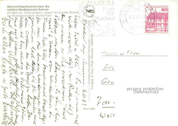 74095642 alte Postkarte AMRUM Insel Nebel Nordfriesland Fliegeraufnahme postalisch gelaufen Erhaltung siehe scans [WerneD78] KatCode: 11110001054085