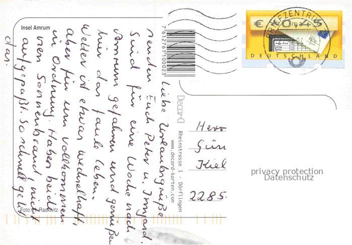 74153770 alte Postkarte AMRUM Insel Nebel Nordfriesland Windmuehle Reetdachhaus Leuchtturm Strand Duenen Kirchturm postalisch gelaufen Erhaltung siehe scans [FriedD77] KatCode: 11110001054085