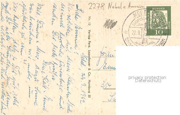 73690572 alte Postkarte Amrum Kirche Inneres Muehle Strand Friesinnen in Heimattracht Brandung postalisch gelaufen Erhaltung siehe scans [WerneD78] KatCode: 11110001054085