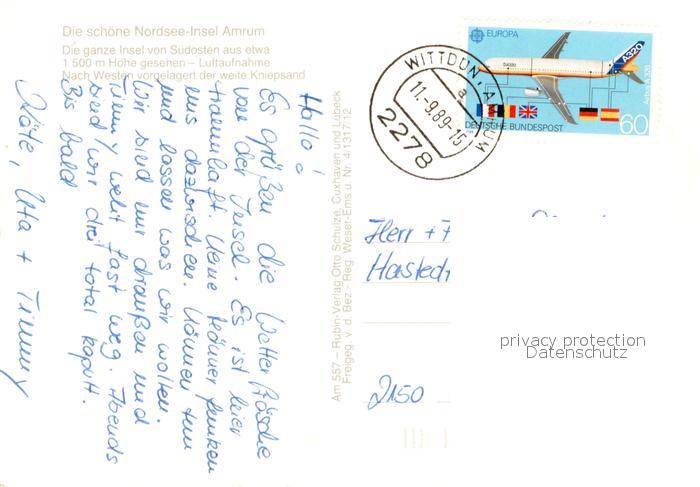 73668663 alte Postkarte Amrum Nordseeinsel Kniepsand Fliegeraufnahme von Suedosten aus ca. 1500 m Hoehe postalisch gelaufen Erhaltung siehe scans [FriedD77] KatCode: 11110001054085