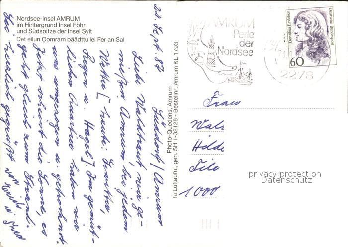 72597274 alte Postkarte Amrum Nordseeinsel mit Insel Foehr Suedspitze Insel Sylt Fliegeraufnahme postalisch gelaufen Erhaltung siehe scans [FriedD77] KatCode: 11110001054085