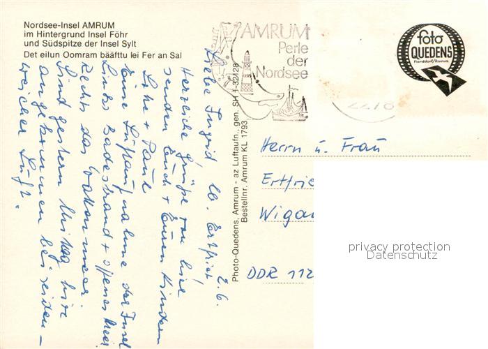 73629407 alte Postkarte Amrum Nordseeinsel mit Insel Foehr Suedspitze Insel Sylt Fliegeraufnahme postalisch gelaufen Erhaltung siehe scans [FriedD77] KatCode: 11110001054085