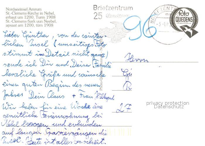 73160434 alte Postkarte Amrum Sankt Clemens Kirche postalisch gelaufen Erhaltung siehe scans [KathaD81] KatCode: 11110001054085