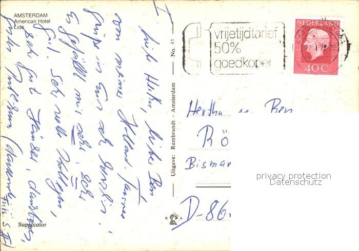 old postcard Amsterdam Niederlande American Hotel postalisch gelaufen Erhaltung siehe scans