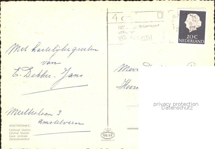 old postcard Amsterdam Niederlande Centraal Station Bahnhof Strassenbahn postalisch gelaufen Erhaltung siehe scans