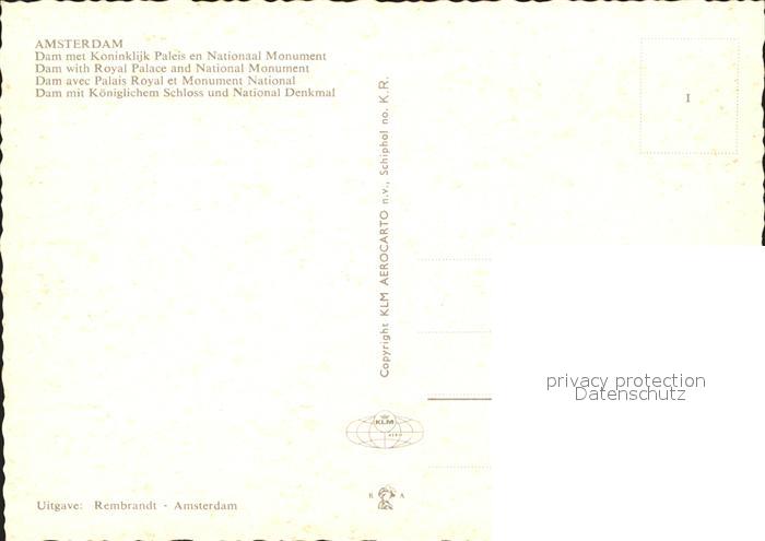 Amsterdam Niederlande Dam Koeniglicher Schloss National-Denkmal Fliegeraufnahme postalisch nicht gelaufen Erhaltung siehe scans