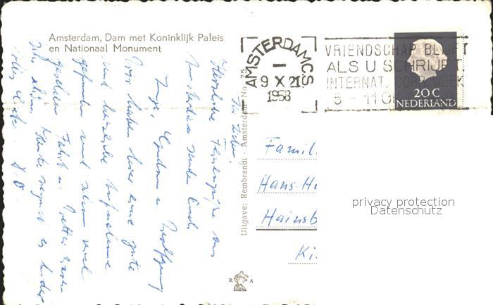 old postcard Amsterdam Niederlande Dam met Koninklijk Paleis en Nationaal Monument postalisch gelaufen Erhaltung siehe scans