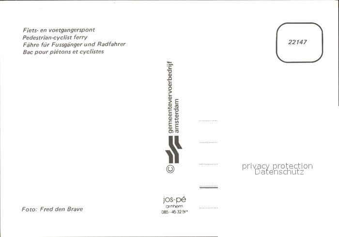 Amsterdam Niederlande Fiets en voetgangerspont postalisch nicht gelaufen Erhaltung siehe scans