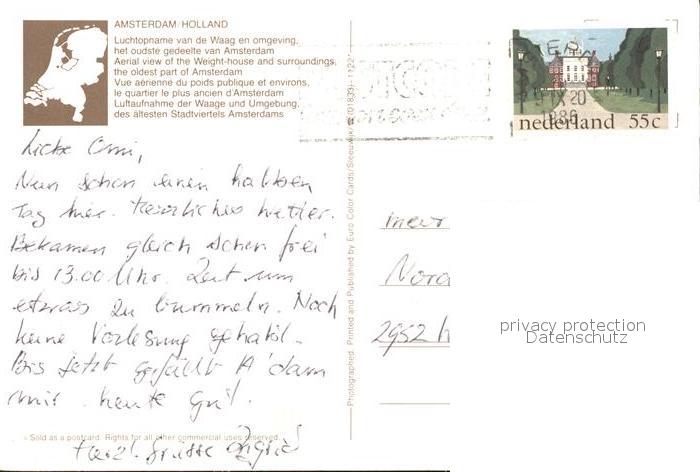 old postcard Amsterdam Niederlande Fliegeraufnahme postalisch gelaufen Erhaltung siehe scans