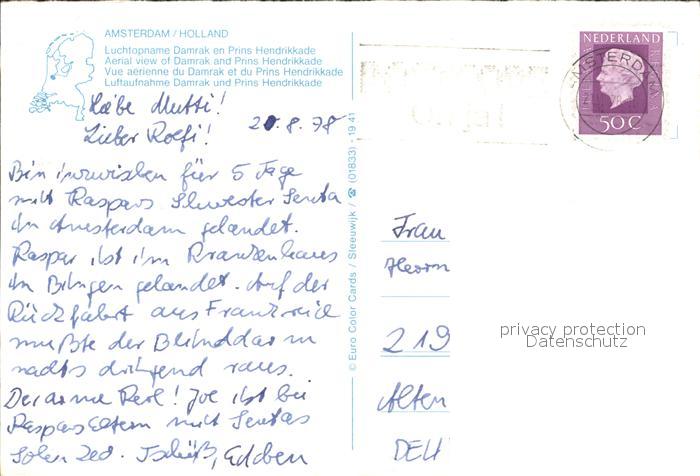 old postcard Amsterdam Niederlande Fliegeraufnahme Damrak Prins Hendrikkade postalisch gelaufen Erhaltung siehe scans