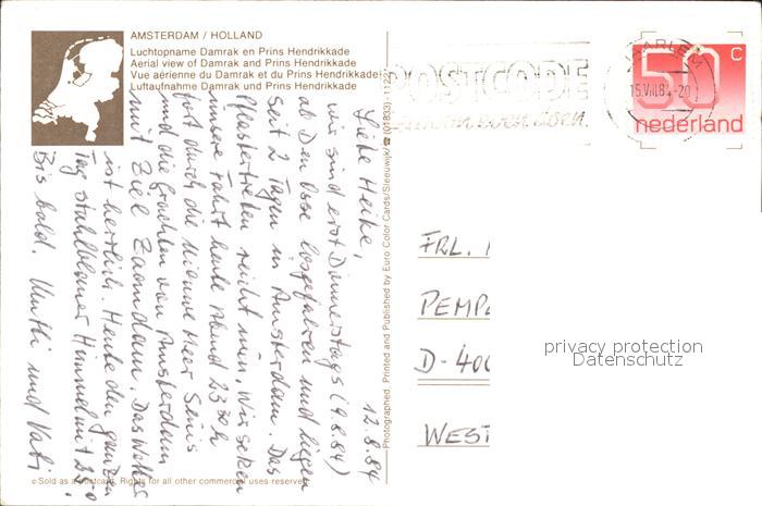 old postcard Amsterdam Niederlande Fliegeraufnahme Damrak Prins Hendrikkade postalisch gelaufen Erhaltung siehe scans