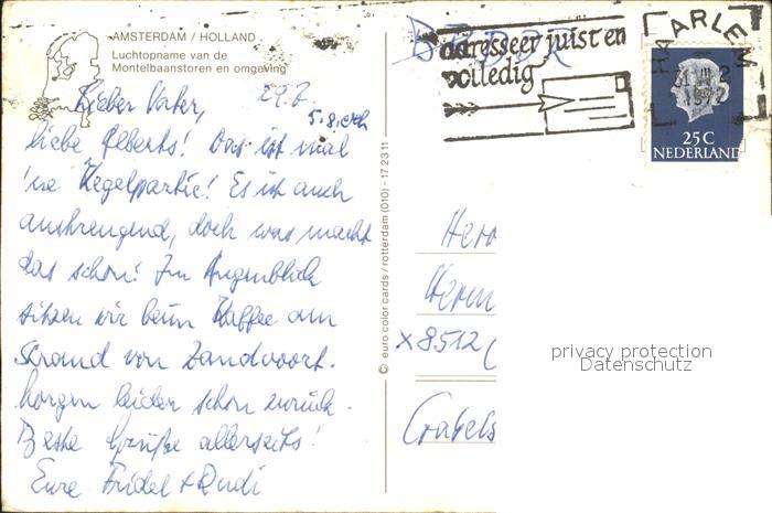 old postcard Amsterdam Niederlande Fliegeraufnahme Montelbaanstoren postalisch gelaufen