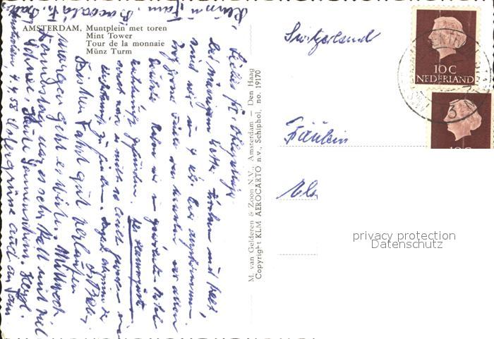 old postcard Amsterdam Niederlande Fliegeraufnahme Muenzturm postalisch gelaufen Erhaltung siehe scans