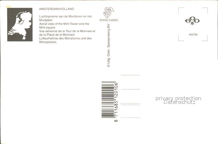 Amsterdam Niederlande Fliegeraufnahme Munttoren Muntplein postalisch nicht gelaufen Erhaltung siehe scans