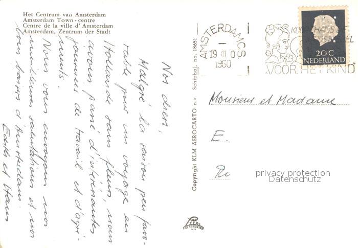 old postcard Amsterdam Niederlande Fliegeraufnahme Stadtzentrum postalisch gelaufen Erhaltung siehe scans [WerneD78]