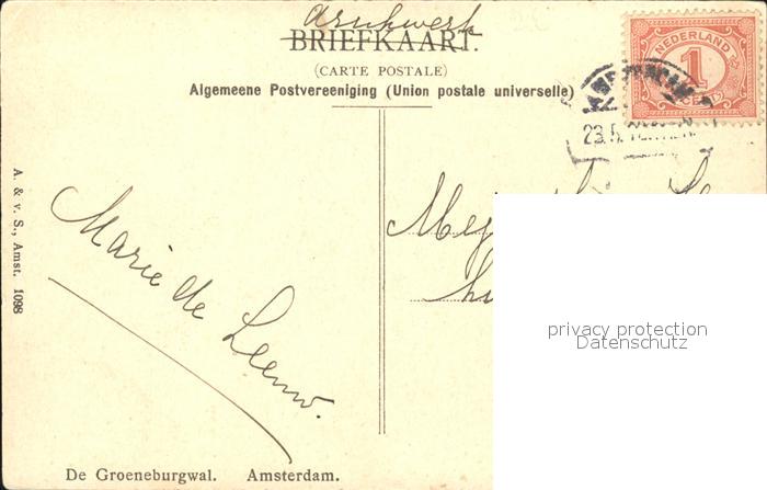 old postcard Amsterdam Niederlande Groeneburgwal postalisch gelaufen
