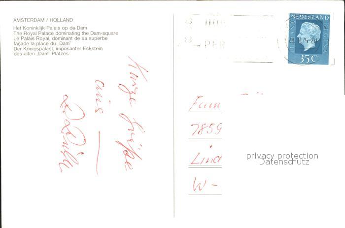 old postcard Amsterdam Niederlande Het Koninklik Paleis op de Dam Fliegeraufnahme postalisch gelaufen Erhaltung siehe scans