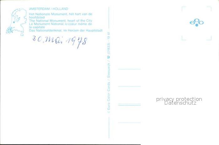 Amsterdam Niederlande Het Nationale Monument postalisch nicht gelaufen Erhaltung siehe scans
