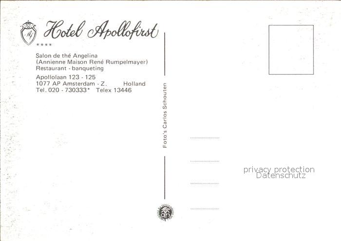 Amsterdam Niederlande Hotel Apollofirst postalisch nicht gelaufen Erhaltung siehe scans