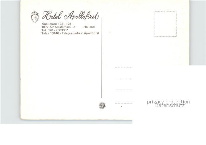 Amsterdam Niederlande Hotel Apollofirst postalisch nicht gelaufen Erhaltung siehe scans