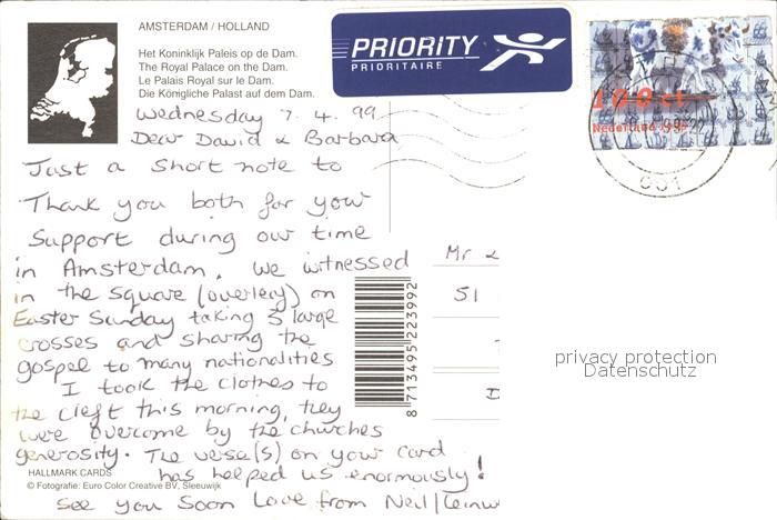old postcard Amsterdam Niederlande Koeniglicher Palast auf dem Dam postalisch gelaufen Erhaltung siehe scans