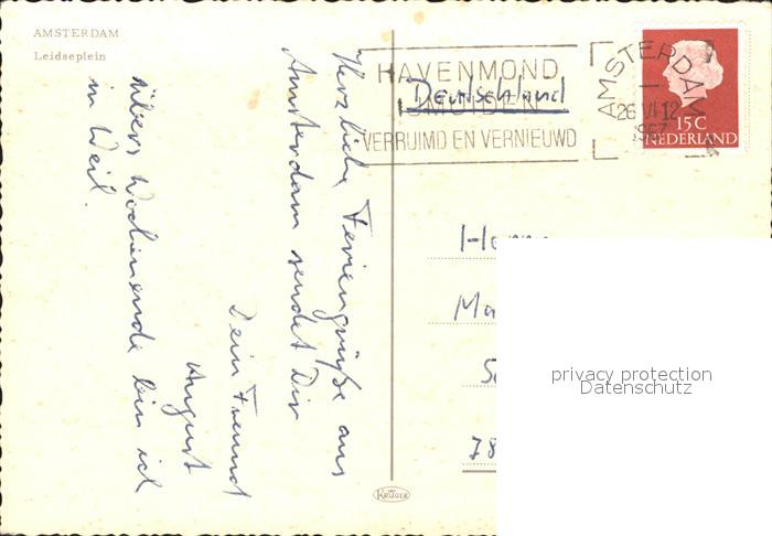old postcard Amsterdam Niederlande Leidseplain postalisch gelaufen Erhaltung siehe scans