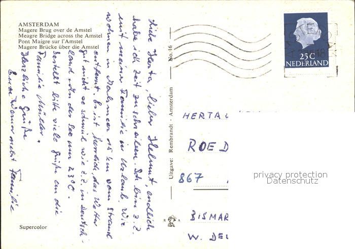 old postcard Amsterdam Niederlande Magere Bruecke Amstel postalisch gelaufen Erhaltung siehe scans