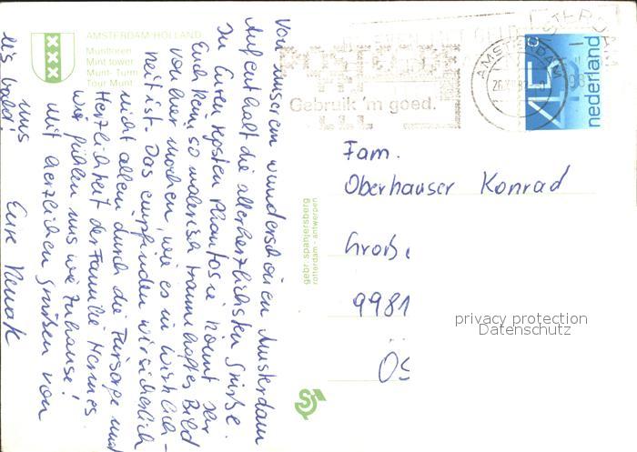 old postcard Amsterdam Niederlande Munttoren postalisch gelaufen