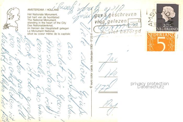 old postcard Amsterdam Niederlande Nationaldenkmal Grand Hotel Krasna postalisch gelaufen Erhaltung siehe scans [KathaD81]