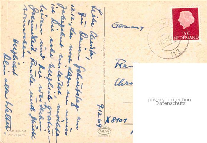old postcard Amsterdam Niederlande Prinsengracht postalisch gelaufen Erhaltung siehe scans [LiesaD40]