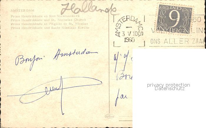 old postcard Amsterdam Niederlande prinz Hendrikkade und Sankt Nilolaus Kirche postalisch gelaufen Erhaltung siehe scans