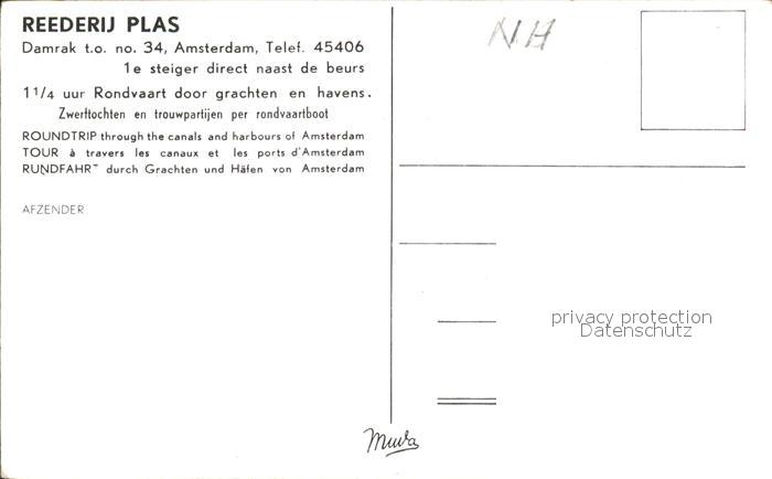 Amsterdam Niederlande Reederij Plas postalisch nicht gelaufen Erhaltung siehe scans