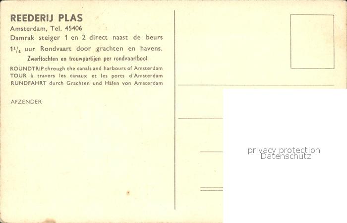Amsterdam Niederlande Reederij Plas postalisch nicht gelaufen Erhaltung siehe scans