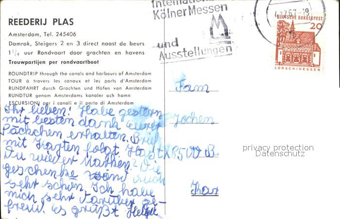 old postcard Amsterdam Niederlande Reederij Plas Damrak Steigers direct naast de beurs Rondvaart postalisch gelaufen Erhaltung siehe scans