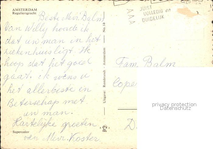 old postcard Amsterdam Niederlande Reguliersgracht postalisch gelaufen Erhaltung siehe scans