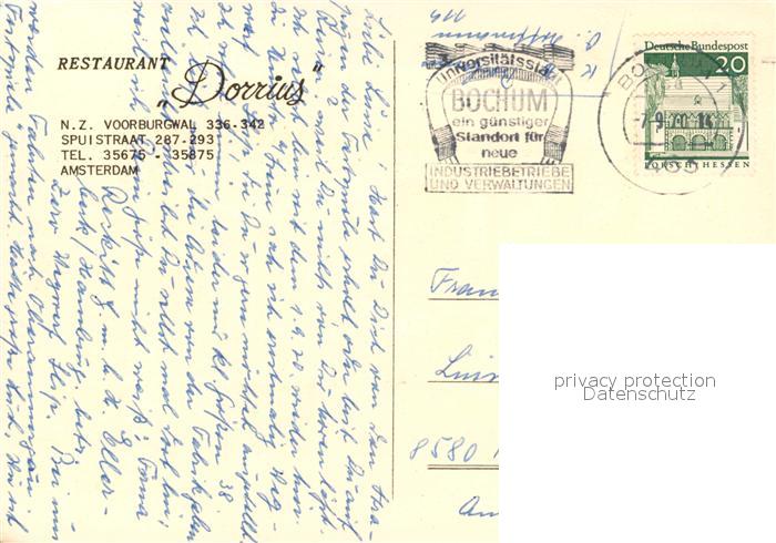 13044072 Amsterdam Niederlande Restaurant Dorrius postalisch gelaufen Erhaltung siehe scans [KathaD81] old postcard Kath Katcode 11370900