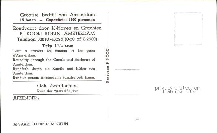 Amsterdam Niederlande Rondvaart postalisch nicht gelaufen