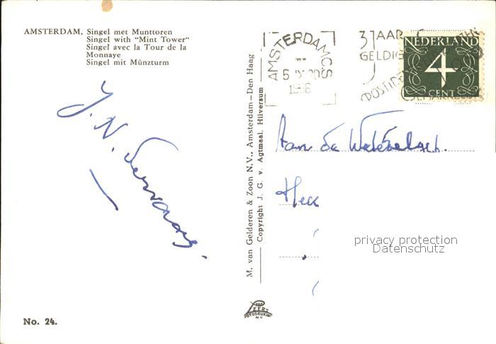 old postcard Amsterdam Niederlande Singel met Munttoren postalisch gelaufen Erhaltung siehe scans
