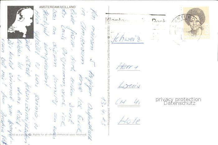 old postcard Amsterdam Niederlande Wasserstrassen Kirche Krachten postalisch gelaufen Erhaltung siehe scans