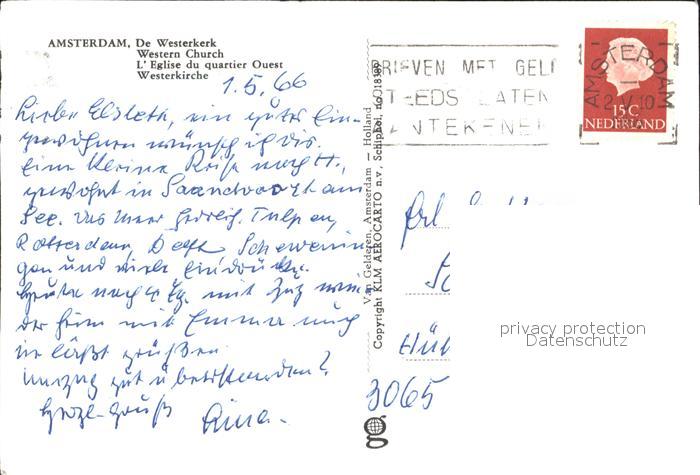 old postcard Amsterdam Niederlande Westerkirche Fliegeraufnahme postalisch gelaufen Erhaltung siehe scans