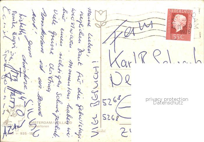 old postcard Amsterdam Niederlande Westertoren postalisch gelaufen Erhaltung siehe scans
