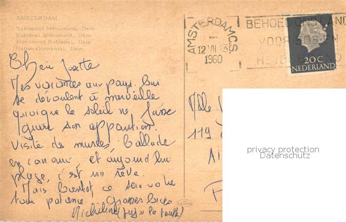 old postcard Amsterdam NL National Monument Dam postalisch gelaufen Erhaltung siehe scans [WerneD78]