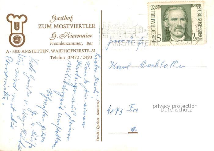 73630042 alte Postkarte Amstetten Niederoesterreich Gasthof Zum Mostviertler Bar Gaststube postalisch gelaufen Erhaltung siehe scans [WerneD78] KatCode: 11390121030502