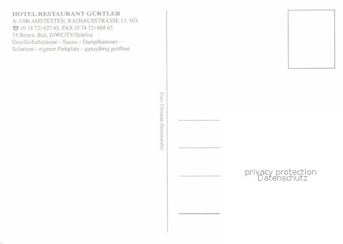 12603950 Amstetten Niederoesterreich Hotel Restaurant Guertler postalisch nicht gelaufen Erhaltung siehe scans [LiesaD40] KatCode: 11390121030502