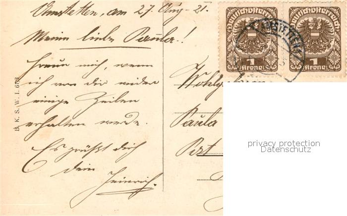 43066738 alte Postkarte Amstetten Niederoesterreich total postalisch gelaufen Erhaltung siehe scans [LiesaD40] KatCode: 11390121030502